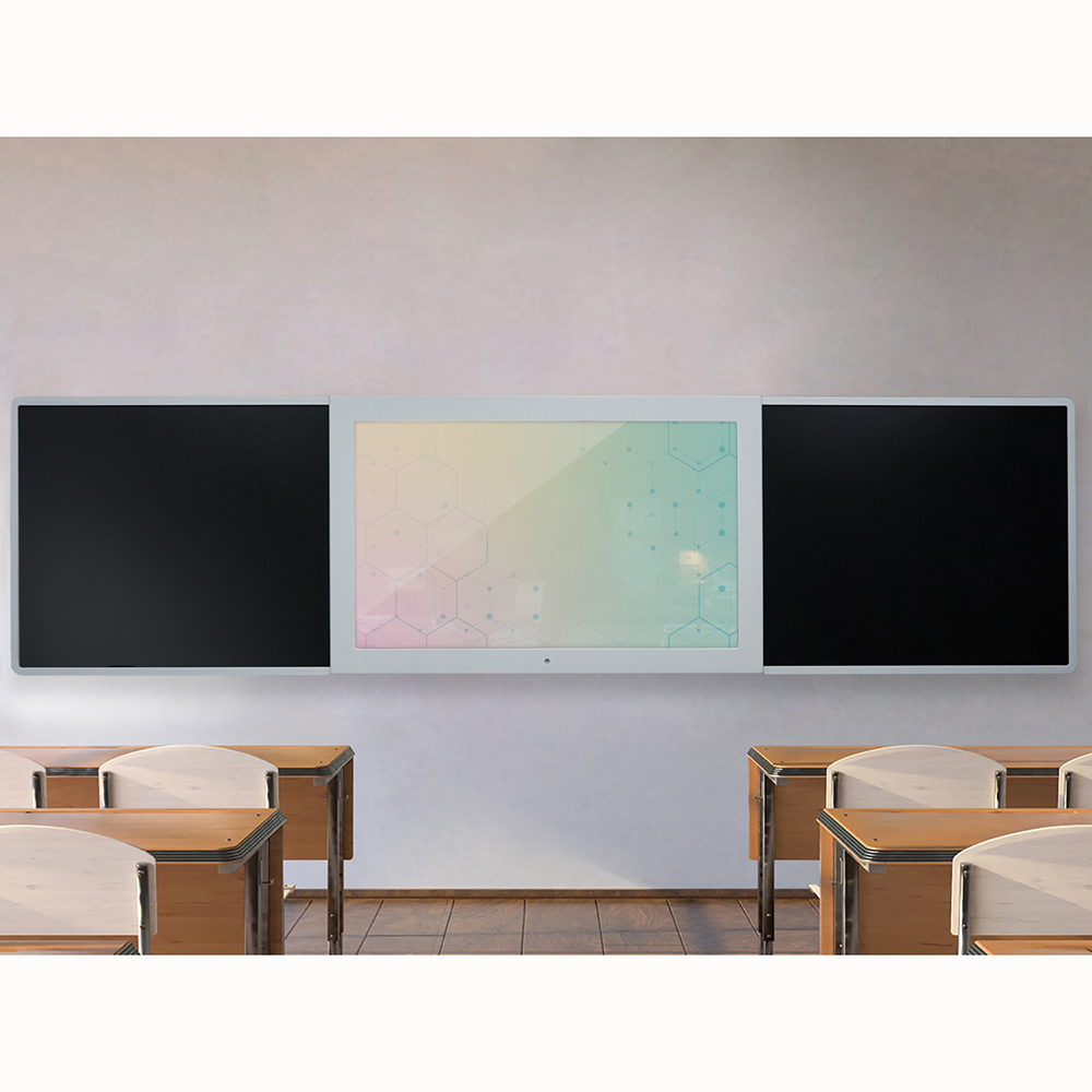 Современная школьная доска, объединяющая инновационные технологии и традиционные инструменты преподавания. В центре интерактивная сенсорная панель с multi-touch (до 10 одновременных касаний), по бокам - пишущая магнитно-меловая поверхность. Подходит для оснащения школ, учреждений культуры, детских кружков, развивающих и коррекционных центров для детей.