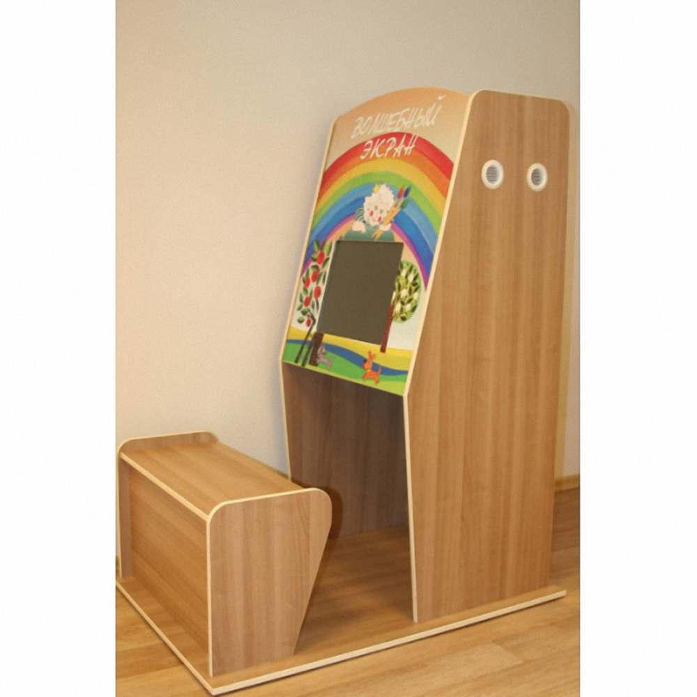 - «Домик» - самый большой из терминалов "Волшебный Экран". Благодаря своей высоте, он хорошо заметен в любом интерьере, а яркие цвета привлекают внимание малышей.