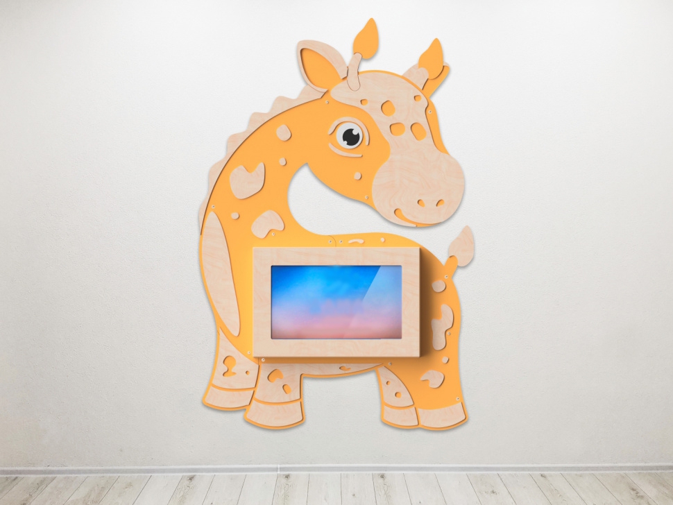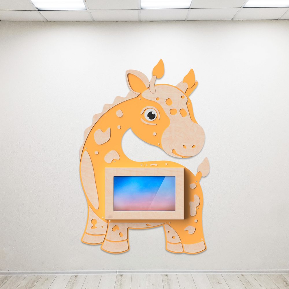 Настенная панель «Жираф» со встроенной интерактивной сенсорной панелью 32 дюйма. Это одновременно декоративное оформление стен и развивающая игрушка, ведь на панели установлен пакет игрового и обучающего ПО.