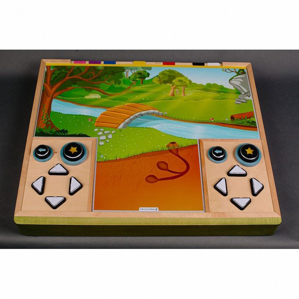 Два пульта управления на интерактивном столе открывают возможность ведения групповой работы, развивая у детей командный дух и здоровое соперничество.