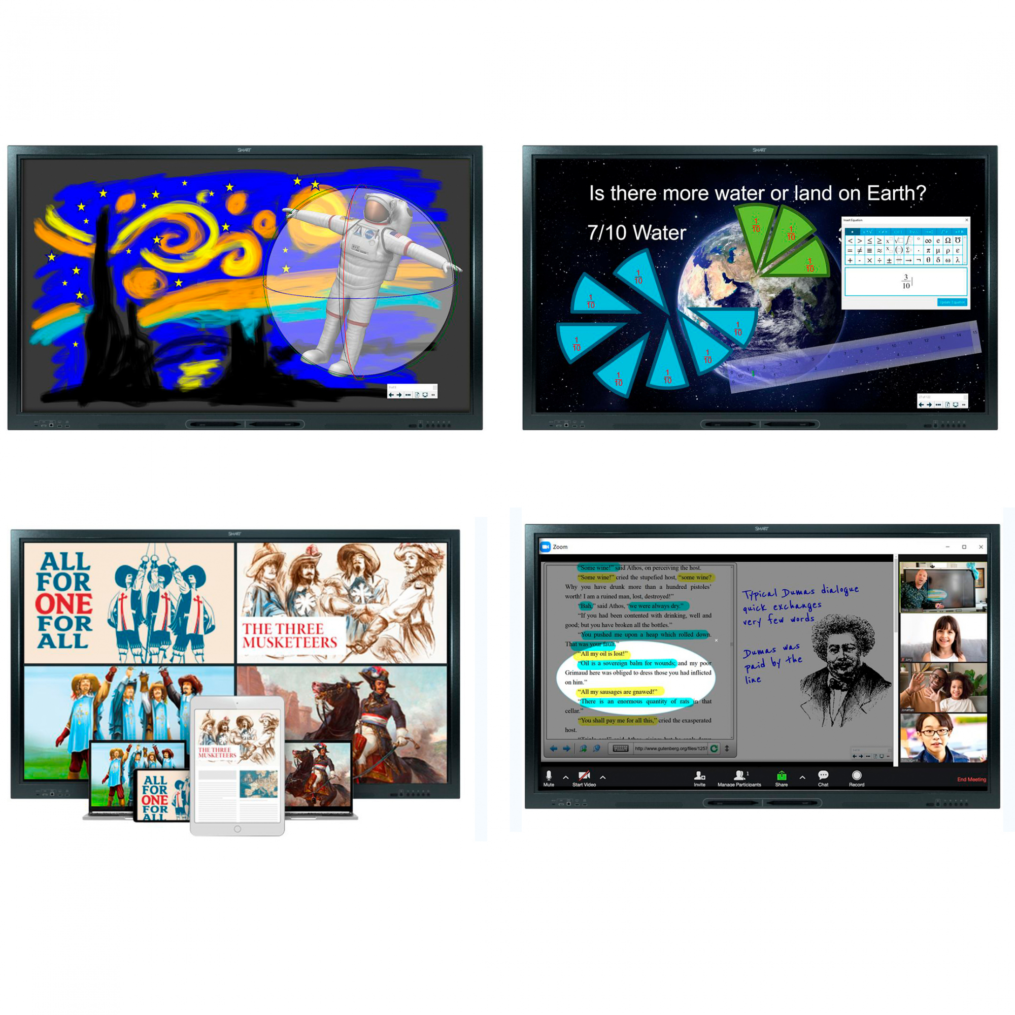 Новинка 2021 года! Серия SMART Board GX обладает всем необходимым для начала работы с интерактивными панелями по невероятно низкой цене. Серия GX включает в себя мощные обучающие инструменты и простой пользовательский интерфейс. Подключайте свои устройства, загружайте свой материал и преобразовывайте статический материал в динамический! Благодаря технологии распознавания жестов вы можете писать стилусом, стирать ладонью и перемещать объекты пальцем. Подключите свой компьютер к серии GX и работайте с содержимым интуитивно понятными и простыми инструментами.