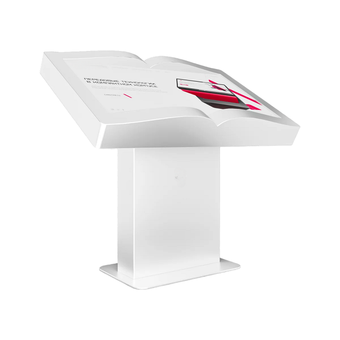 Интерактивный стол Book 43” – устройство, форм-фактор которого реализован в форме раскрытой книги. Механическая регулировка дисплея позволит настроить пользователям оптимальный угол для взаимодействия с программным обеспечением. Оборудование может быть дополнено информационным приложением или интерактивной книгой с эффектом пролистывания страниц.