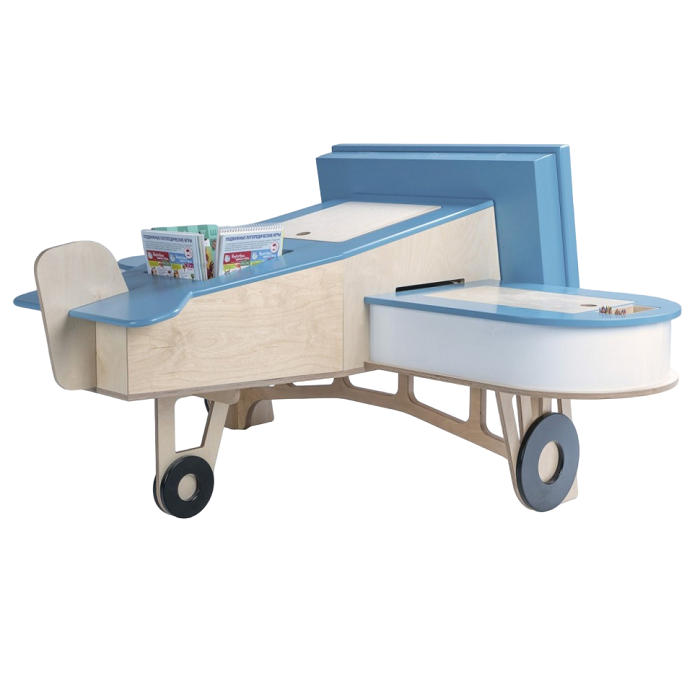 На правом крыле самолёта расположен световой стол для рисования песком. Песочная панель закрывается крышкой, становясь полноценной рабочей зоной для детей.