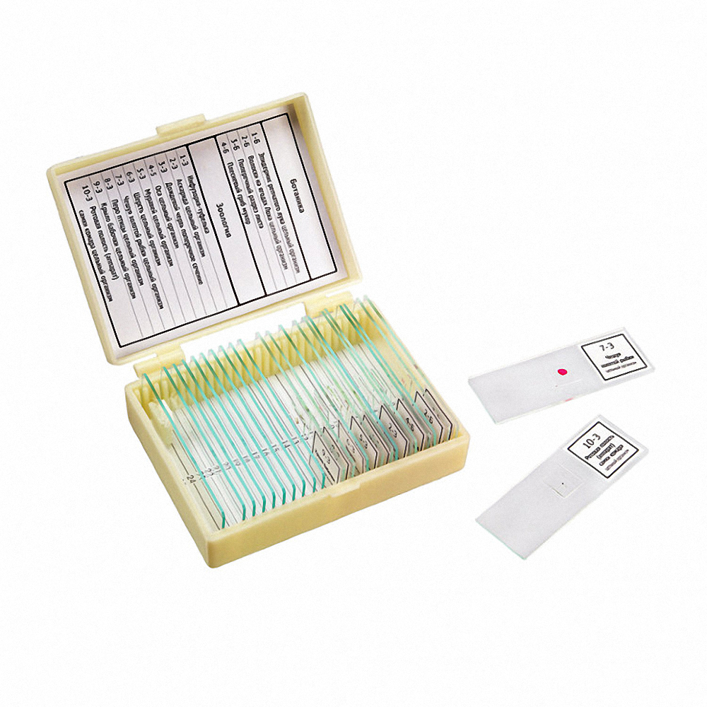 В набор по ботанике входят 8 различных микропрепаратов от 5 до 15 штук каждого вида (всего 90шт). Это позволяет использовать набор для большой аудитории, что способствует лучшему восприятию и запоминанию полученной информации, а также развивает исследовательские способности у учащихся.