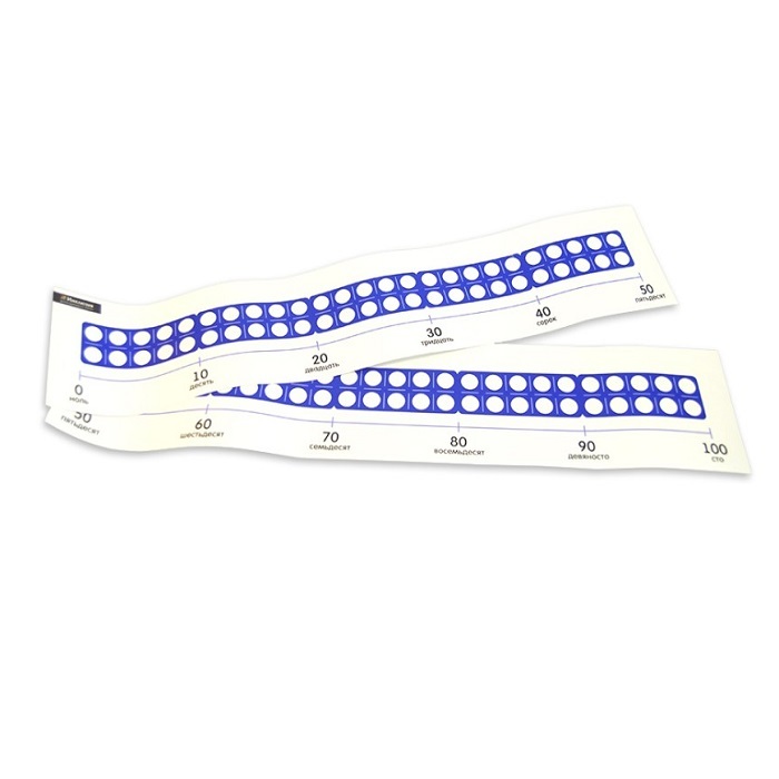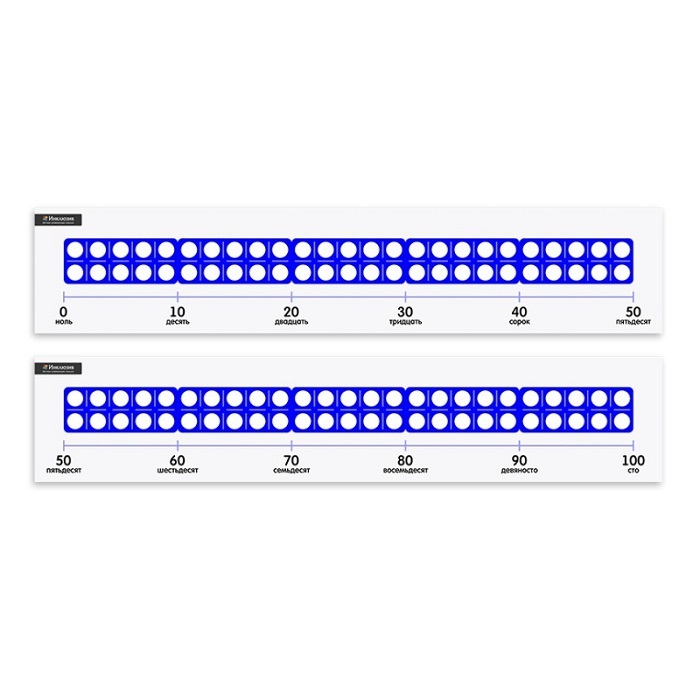 Синяя числовая прямая из десятков для работы с числовыми формами, прямая состоит из двух частей, удобно скручивается, поверхность устойчивая к истиранию. Подходит для работы как индивидуально с ребенком, так и с группой детей.