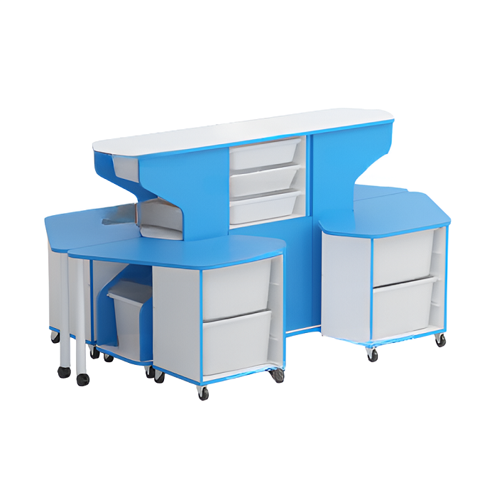 Главная Каталог Подготовительная группа и детский сад Инженерный класс в детском саду Мебель для инженерного класса в детском саду Модуль-стеллаж "Робот-Робик 002" (белый/синий)
