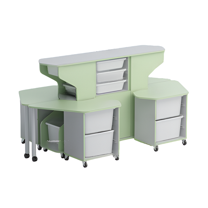 Главная Каталог Подготовительная группа и детский сад Инженерный класс в детском саду Мебель для инженерного класса в детском саду Модуль-стеллаж "Робот-Робик 002" (серый/фисташковый)