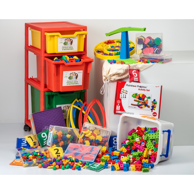 Комплект состоит из многофункциональных пособий, которые помимо математических навыков выполняют также и ряд других функций: