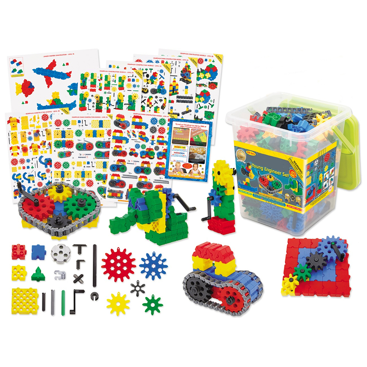 Конструктор «Набор юного инженера» – базовый набор для ознакомления детей с механическими шестеренчатыми и цепными передачами, их свойствами и особенностями, понятием передаточное отношение, скорость вращения.