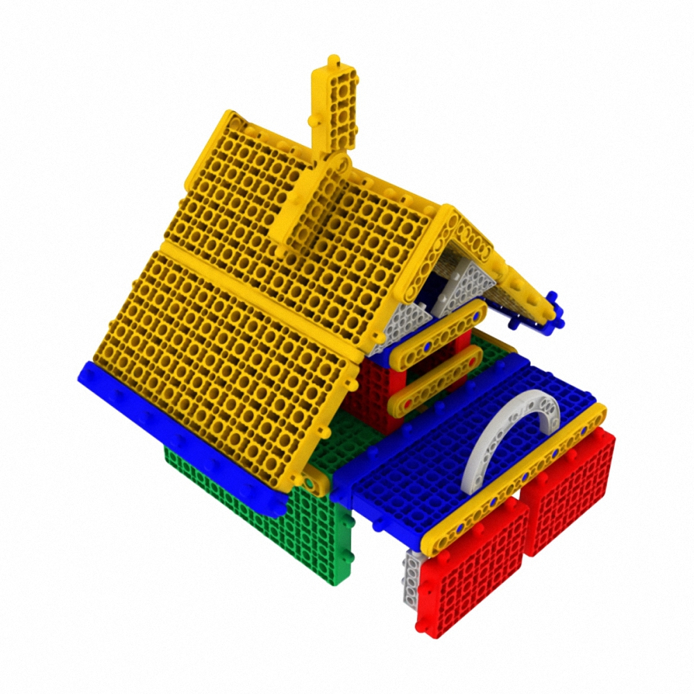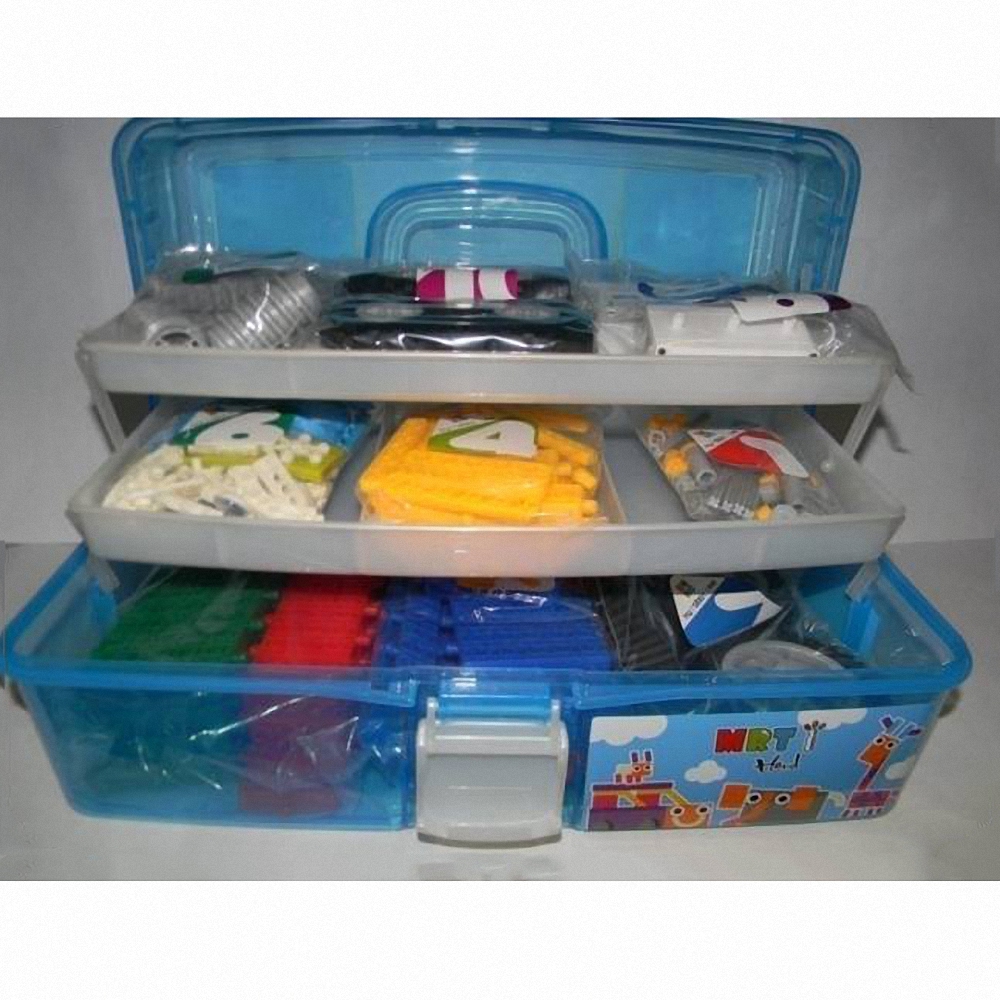 Набор состоит из не менее чем 169 деталей. Блоки изготовлены из ABS пластика 4 цветов- красный, синий, желтый, зеленый. Блоки можно соединять с 6 сторон. Толщина больших блоков- 12 мм. Диаметр входных отверстий на блоках - 6 мм и 4 мм, что позволяет соединять большие блоки между собой и также соединять их с деталями конструктора меньшего размера .