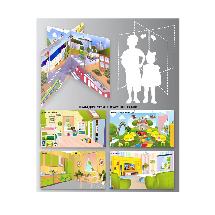 Напольный стенд для сюжетно-ролевых игр 4-х сторонний (детская комната, гостиная, кухня, комната в детском саду)