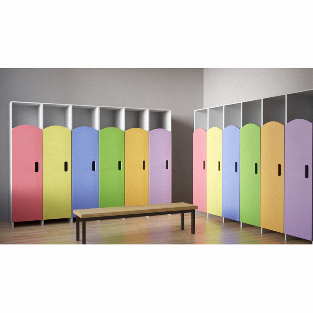 Детский гардероб «Яркие моменты» — удобные стеллажи для детей разных возрастов, которые выполнены из качественных, а главное безопасных материалов. Оснащены элементами в виде крючков и полок для складывания одежды и обуви. Дети могут самостоятельно, без помощи взрослых, складывать свои вещи в шкафчик, развивая самостоятельность. Данный гардероб «Яркие моменты» выступает как специализированная мебель для детей, которая может стать прекрасным дополнением к полноценному гардеробу в интерьере детского центра, детского сада, а также подойдет для специальных школ и интернатов.