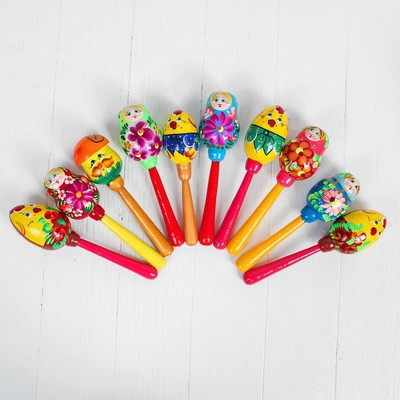В ассортименте представлены 6 маракасов веселой пестрой расцветки.