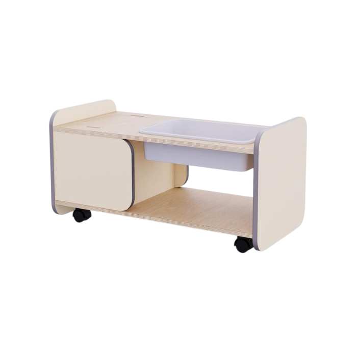 Передвижной модуль для игр с песком и водой является важным элементом в обогащении сенсорного опыта ребёнка, знакомит его со свойствами материалов и помогает снимать психоэмоциональное напряжение, вызванное адаптацией к условиям ДОУ. Обязателен в дошкольных учреждениях для групп раннего возраста (до 3 лет).