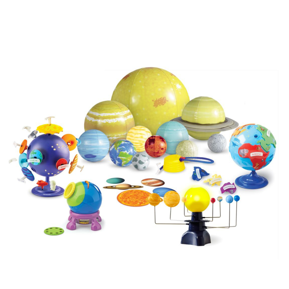 Учебно-методический комплект «Космос в детском саду» создан для родителей, воспитателей ДОУ, преподавателей дополнительного образования. Комплект оборудования для занятий по познавательному и речевому развитию детей в совместной со взрослыми или самостоятельной деятельности, может быть использован на логопедических занятиях, в играх.  Основная цель комплекта - познавательное развитие ребенка дошкольного возраста. Дети в игровой форме смогут познакомится с удивительными тайнами вселенной, изучить планеты Солнечной Системы и карты звездного неба. Юным астрономам будут особенно интересны надувные макеты Земли, Луны и планет Солнечной системы, проектор и моторизованный планетарий, при помощи которых ребенок получит обширные познания в астрономии без труда и с большим интересом. Оборудование из комплекта поможет в усвоении школьной программы и расширения кругозора.