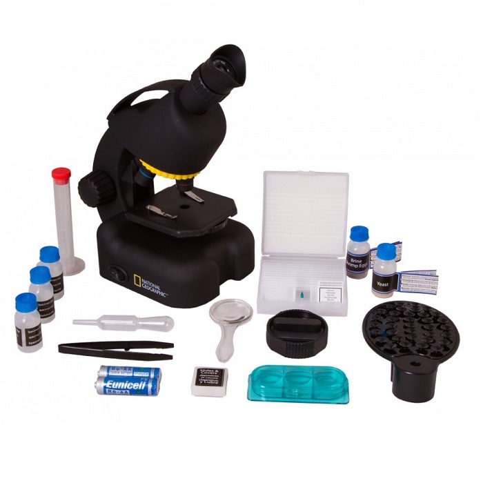 В комплекте идет множество аксессуаров для проведения научных опытов: покровные и предметные стекла, коробочка для разведения артемии, инструменты и препараты. Начать исследования можно прямо «из коробки».