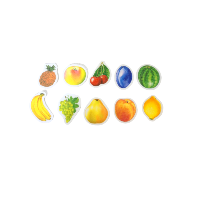 Благодаря данному набору ваш ребенок узнает названия фруктов и ягод, цветов, размеров. Также данный набор будет верным помощником в освоении счета.