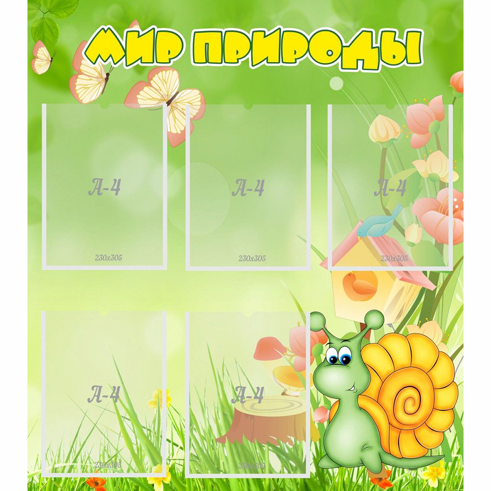 Стенд украшен изображением улитки. Может использоваться в качестве наглядного пособия для изучения времен года, природы и животных. В карманах можно размещать рисунки, плакаты, фотографии, интересную и полезную информацию на заданную тему.