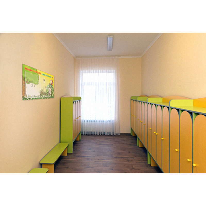 Небольшой стенд отличается необычным дизайном. Справа светлячок с фонариком на крыше собственного домика освещает дорогу запоздавшим путникам. Слева - большое дерево с густой кроной. Низ картины занимает густая трава с множеством ромашек. Средняя часть стенда почти свободна, благодаря чему два кармана под листы формата А4 не заслоняют никаких важных элементов дизайна.  Название стенда оформлено в одну строку буквами двух цветов. В изготовлении стенда используется качественная фурнитура, стойкие краски, высококачественный материал.