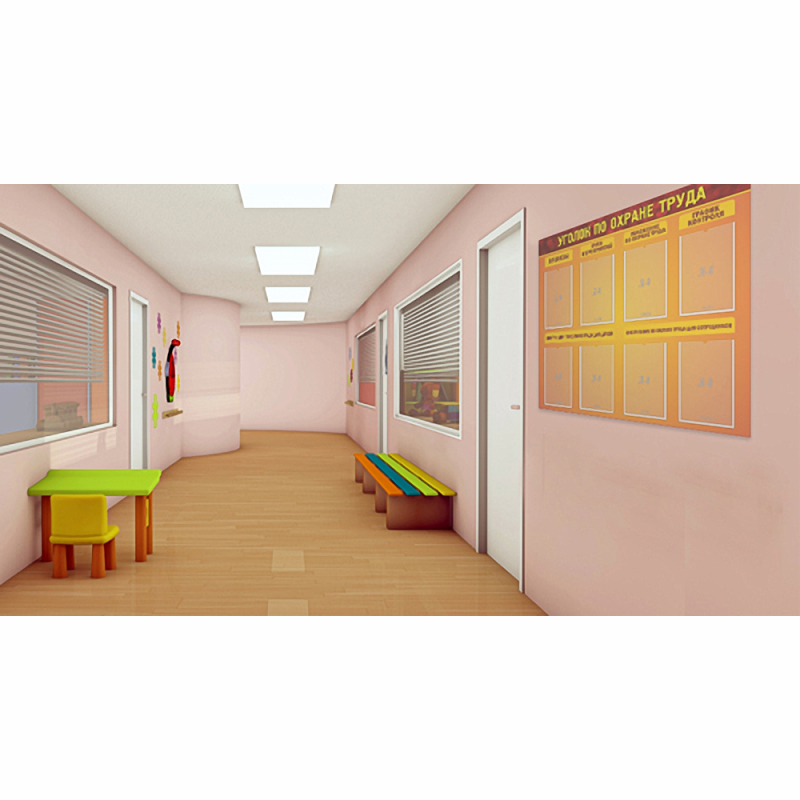 Нельзя представить себе ни одно детское заведение без информации об охране труда. Стенд имеет яркий фон, поэтому его будет видно издалека. Информация разбита на категории, а материал удобно разместится в кармашках. Это обеспечит доступность информации, сохранность ее внешнего вида, удобство в использовании. Материал, представленный на стенде, предполагает его использование администрацией, сотрудниками и детьми. Также, он будет полезен для ознакомления родителям. Имеет 6 категорий, в которые включены приказы, основные положения по охране труда, график контроля, план мероприятий, инструкции для детей и сотрудников.