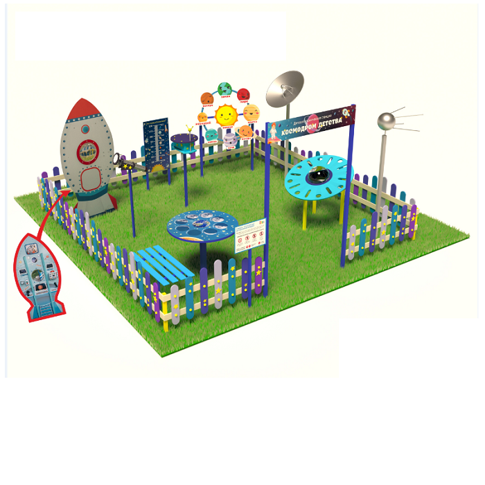 «Детская космическая станция» - это уличный комплекс, в состав которого входят красочные интерактивные стенды и макеты. С их помощью дети осваивают первые азы астрономии.