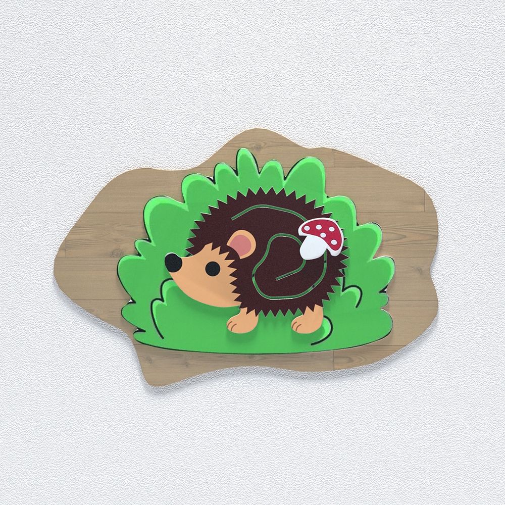 Бизиборд «Ежик» – дидактическое приспособление с игровым уклоном для детей от 1 года. Может быть как объёмным (куб, домик), так и более компактным - в виде плоской настенной панели, которая замечательно экономит игровое пространство, не уменьшая при этом его ценности. Бизиборд «Ёжик» - одна из таких моделей, которая крепится к стене. Основа имеет форму кустика, на фоне которого прикреплён ёжик с грибочком на иголках. Поверхность игрушки отполирована специальным образом по особо технологии и покрыта несколькими слоями (грунт, лак, краска) экологически безопасных материалов.