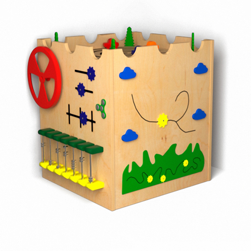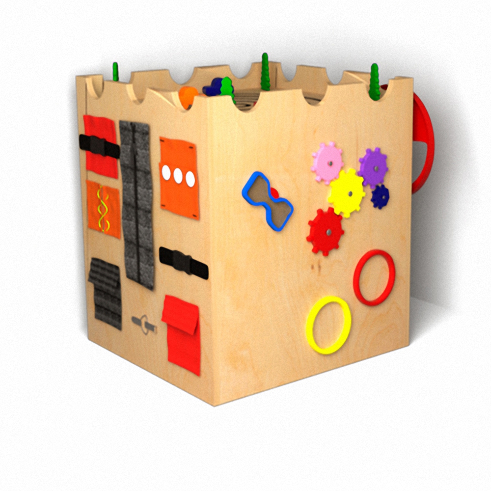 Увлекательная, разносторонняя, полезная детская игра, которая развивает мелкую моторику и мышление ребенка. Прекрасно подойдет для самостоятельной игры, а также для занятий с мамой и педагогом в детском саду, развивающем центре, разнообразит занятия с логопедом и психологом, а также украсит любую детскую комнату. Этот бизикуб выполнен из безопасных и прочных материалов: текстиля, металла и дерева, что позволяет пользоваться игрой с раннего возраста.