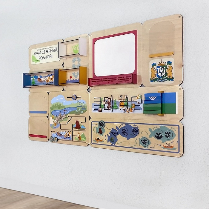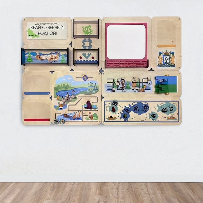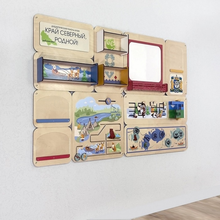 Главная Каталог Подготовительная группа и детский сад Сенсомоторное развитие Сенсорные панели для детей Дидактическая настенная панель «Край северный, родной. ХМАО»