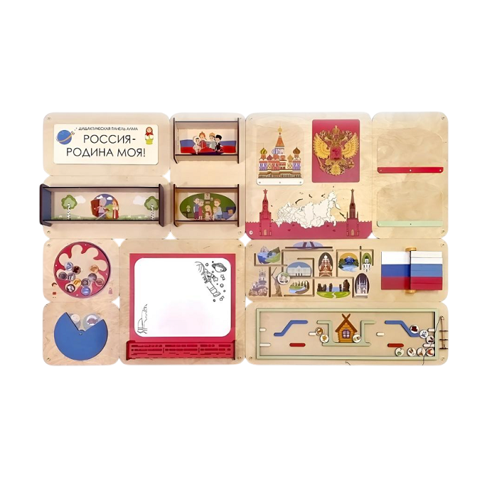 Главная Каталог Подготовительная группа и детский сад Сенсомоторное развитие Сенсорные панели для детей Дидактическая настенная панель «Россия – Родина моя»