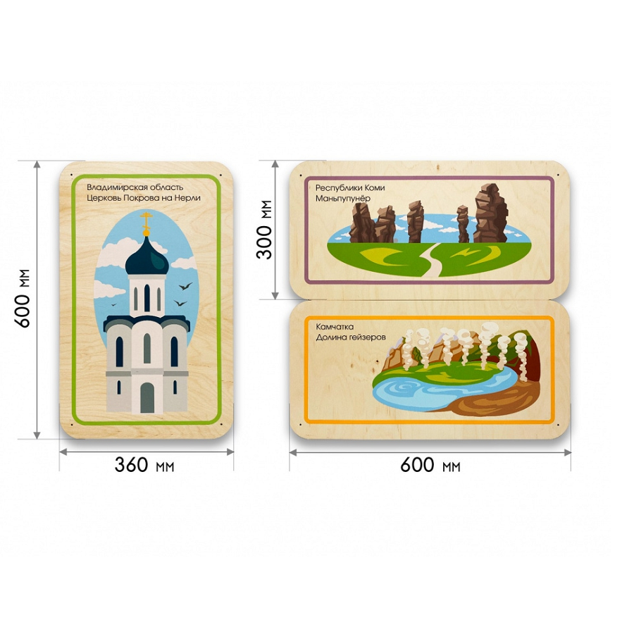 Главная Каталог Подготовительная группа и детский сад Сенсомоторное развитие Сенсорные панели для детей Набор стеновых панелей «Памятные места России - Владимир, Республика Коми, Камчатка»