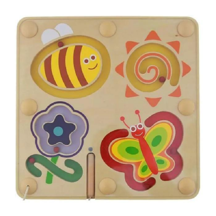 Магнитный лабиринт с изображением насекомых, способствующий развитию моторики. Детям нужно будет держать магнитную ручку, чтобы перемещать бусины по спирали, овальному цветку и дорожкам в форме бабочки.