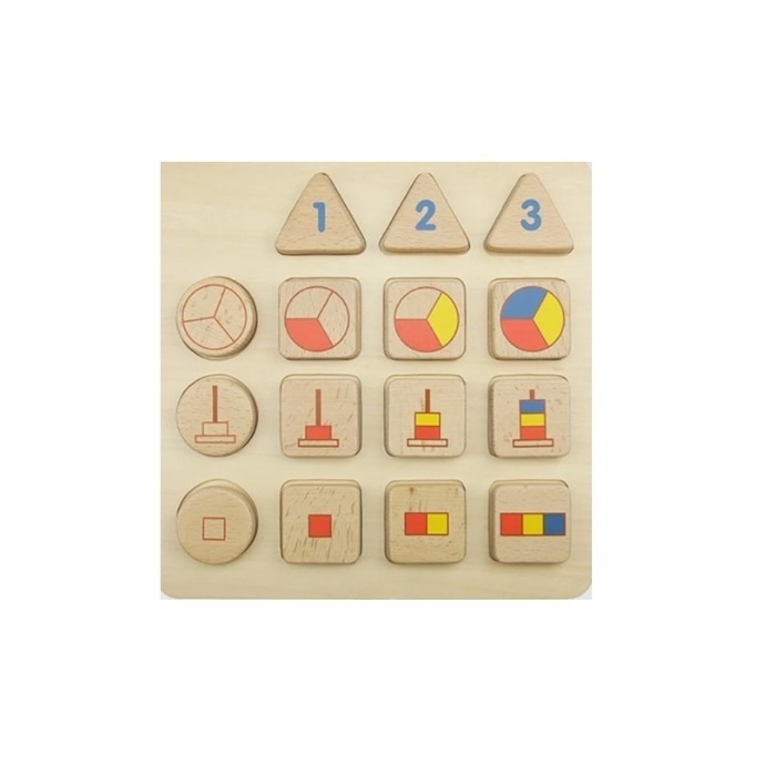 3 треугольных блока в верхнем ряду представляют числа 1, 2 и 3. 3 круглых блока в левом столбце представляют 3 различных представления чисел.Для игры учитель или родитель могут использовать любой из 3 круглых блоков и 3 треугольных блоков и попросить ребенка сопоставить квадратные блоки с цифровыми блоками. Или, чтобы разместить все 3 треугольных блока и все круглые блоки на доске, попросите ребенка разместить все 9 квадратных блоков в правильных местах.Идеальная игрушка для количественного обучения, изучения числовых представлений и развития навыков логического мышления.