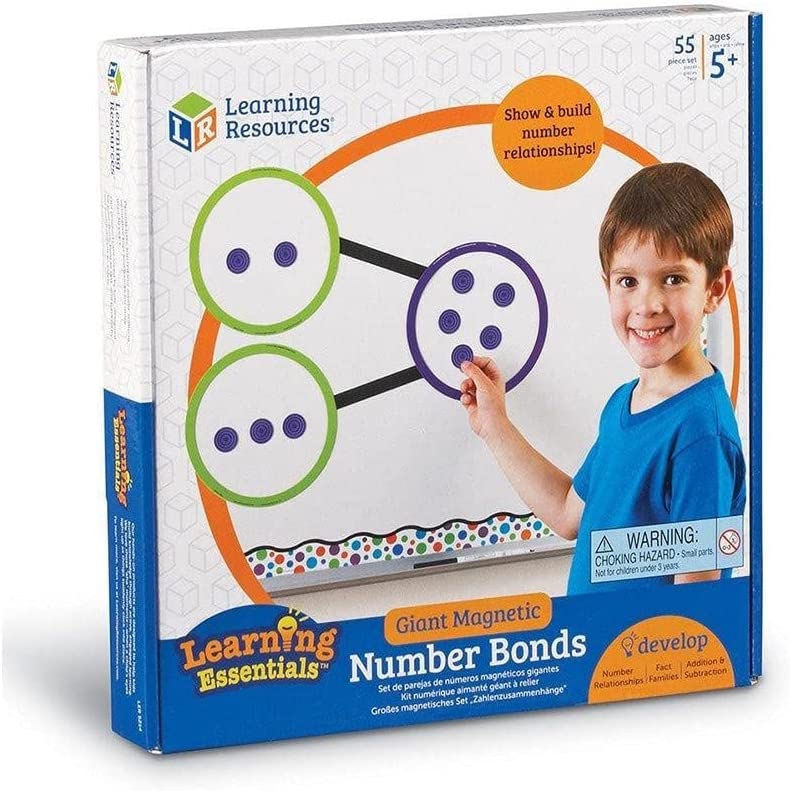 Два набора, в формате круга и квадрата, позволяют многократно продемонстрировать числовые связи. Регулярно меняйте формат и порядок каждый раз, когда вы размещаете числа на доске. Например, вы можете поместить фиолетовый круг (целое) сверху и два зеленых круга снизу (часть/часть), или фиолетовый квадрат слева (целое) и два зеленых квадрата (часть/часть) справа. Также вы можете использовать одновременно круги и квадраты, чтобы показать часть-часть-целое для усиления коммутативного свойства сложения.