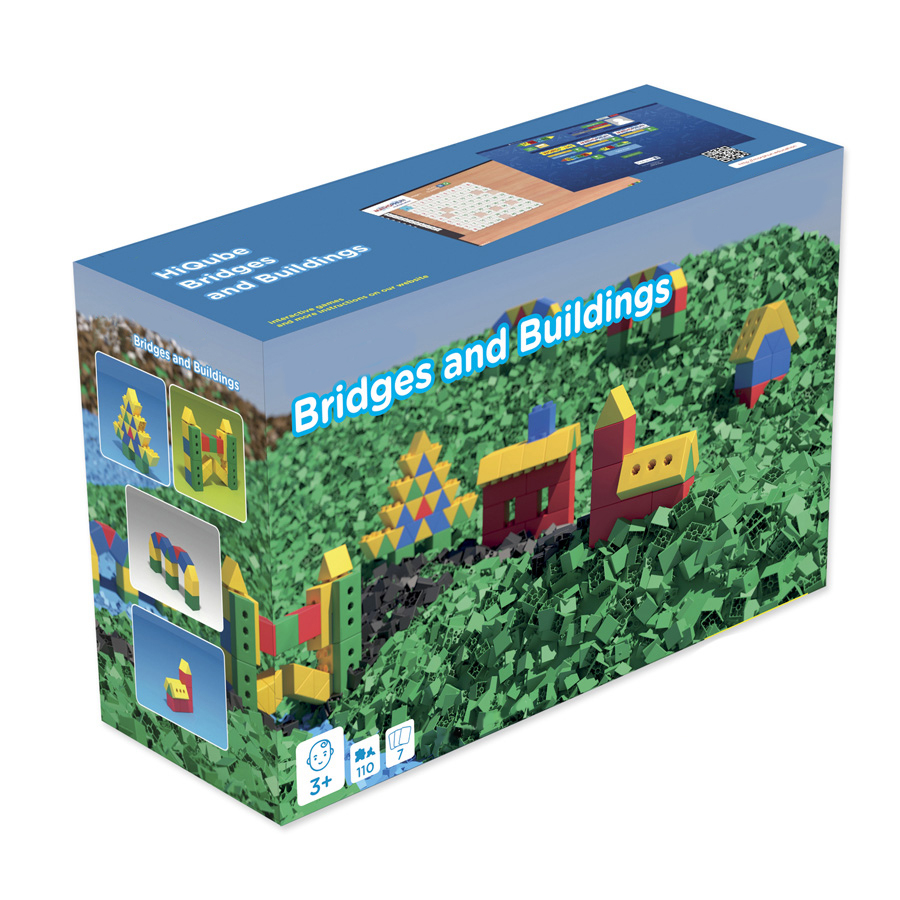 Набор конструктора включает 110 деталей ярких цветов, 10-и различных форм, в том числе параллелепипеды разных размеров, треугольные призмы, соединительные элементы в виде стержней.